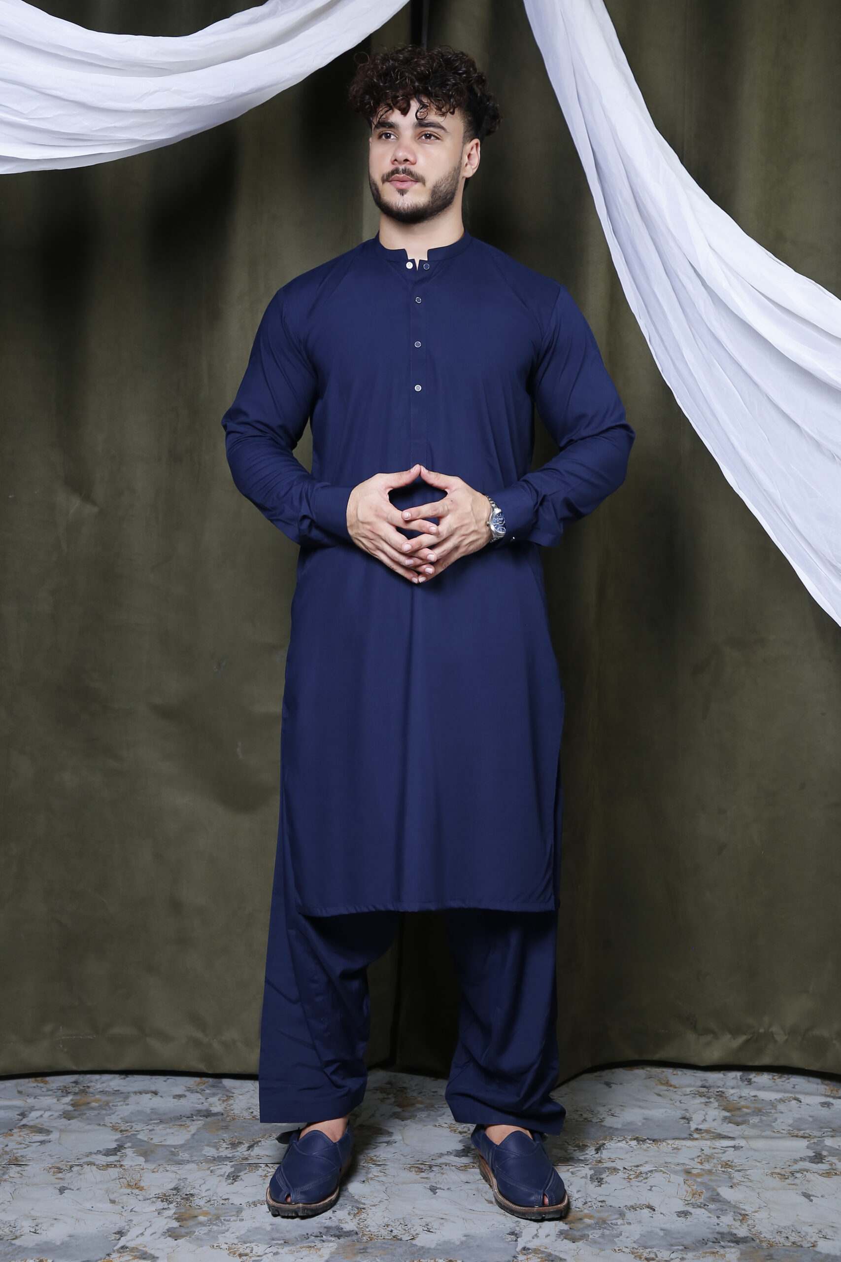 Be the first to review “Classic Collar Kameez Shalwar Navy”