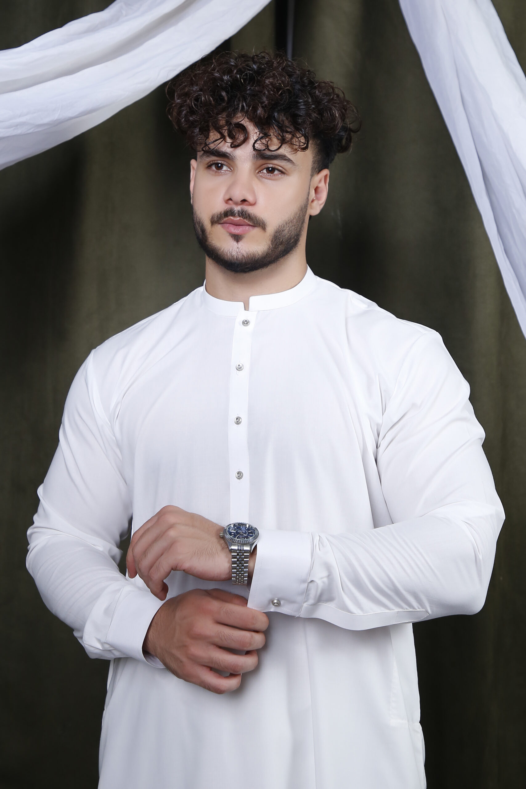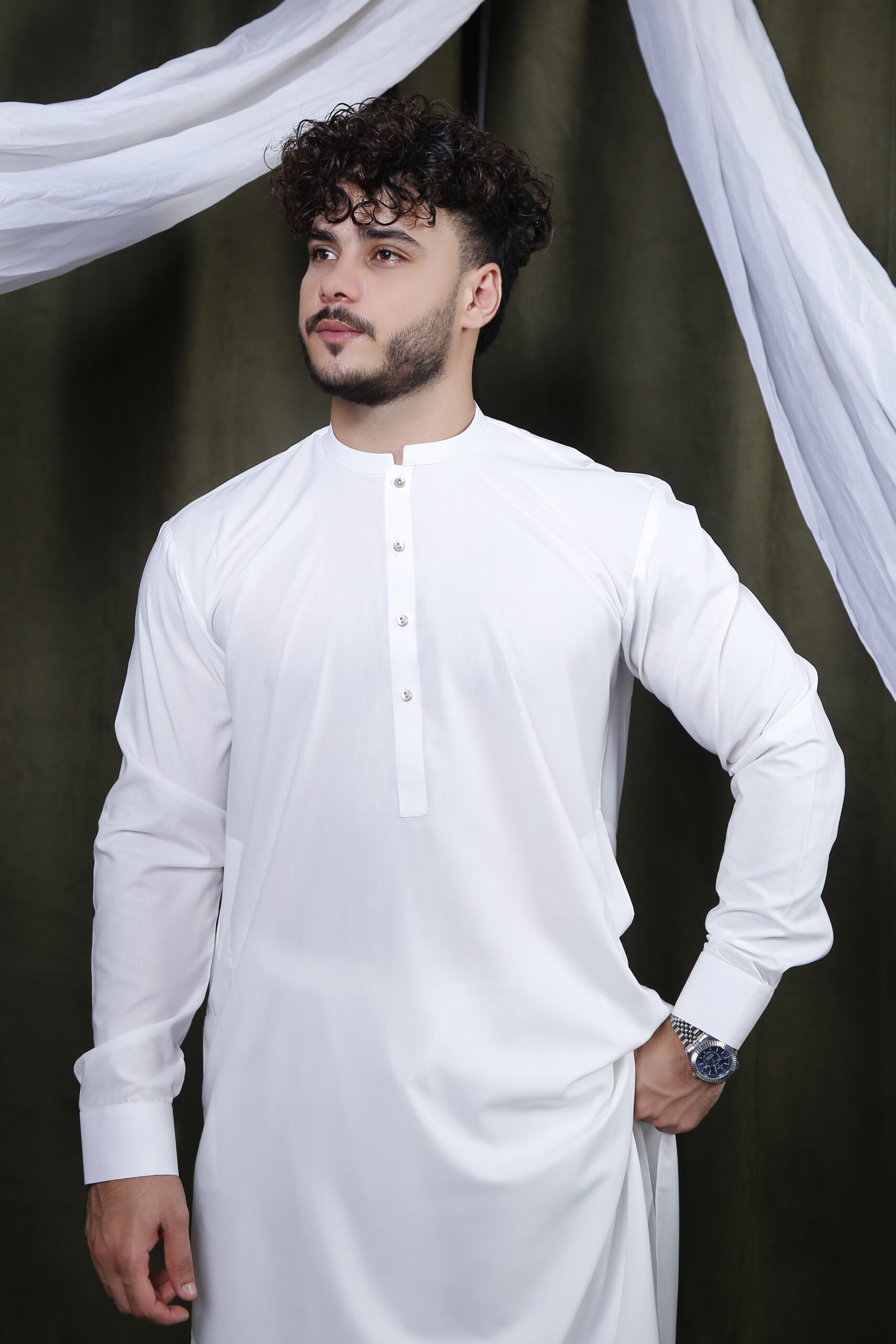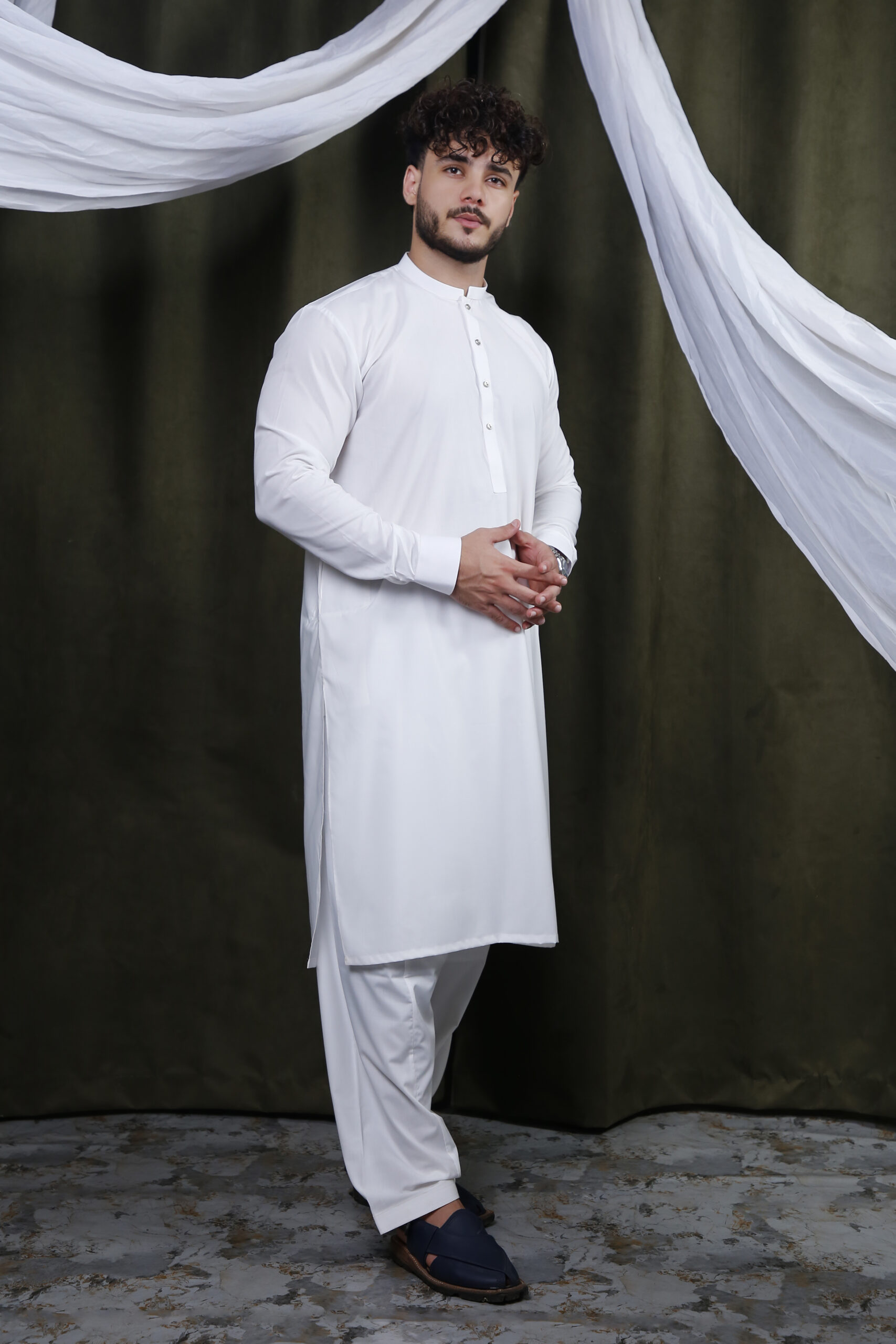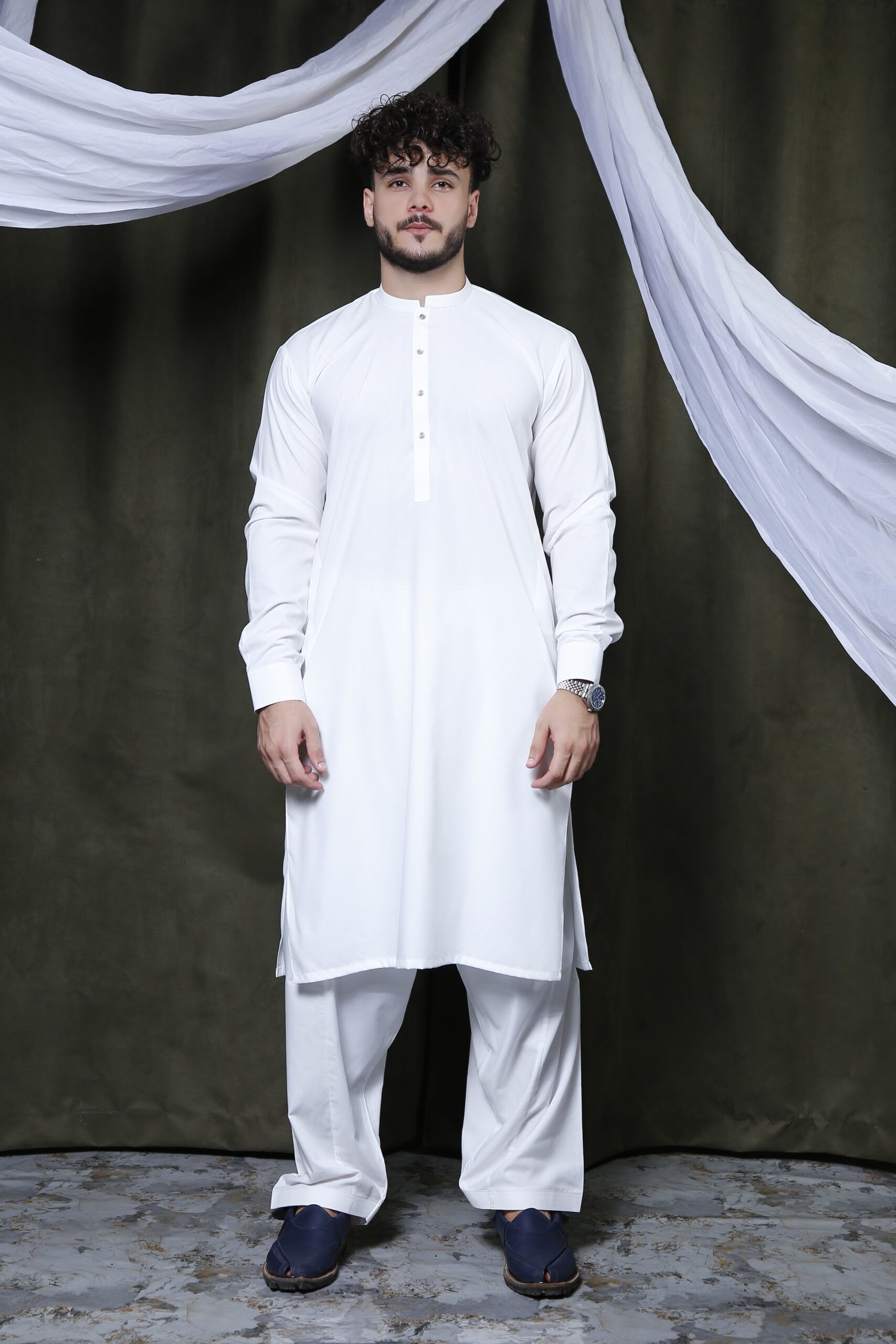 Classic Collar Kameez Shalwar WhiteClassic Collar Kameez Shalwar White